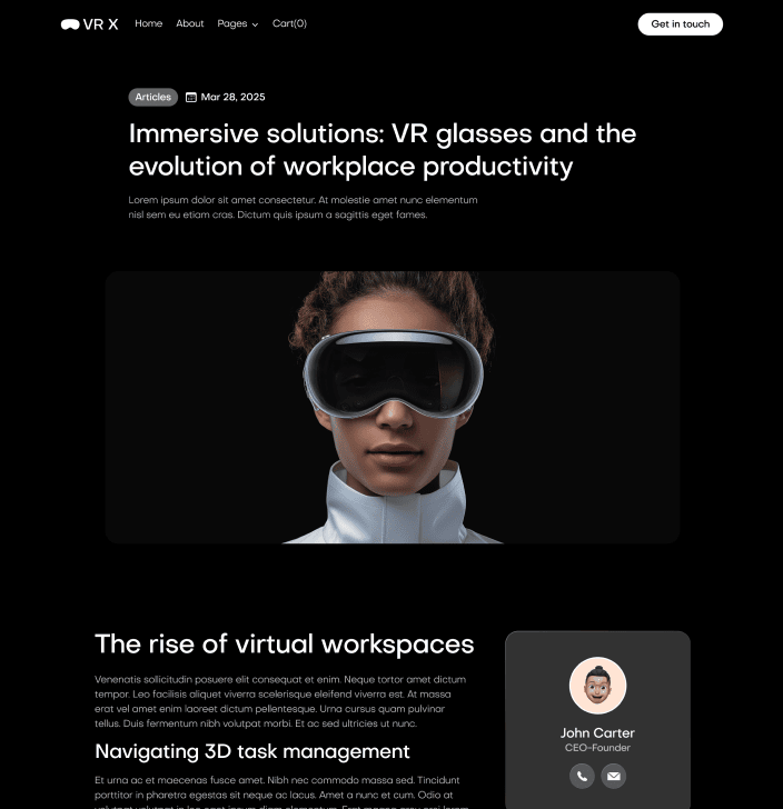 With a total of 3 different headers and footers, you can easily customize the VR X Webflow Template to fit your company needs and requirements.